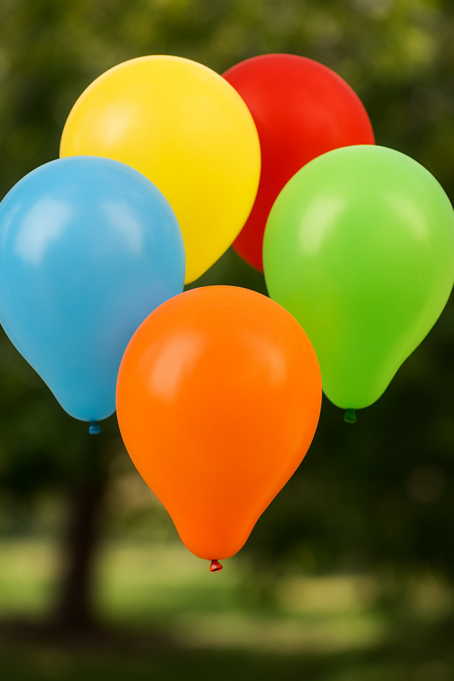 10 броя парти балони, изработени от траен каучук с класическа форма в различни ярки цветове.