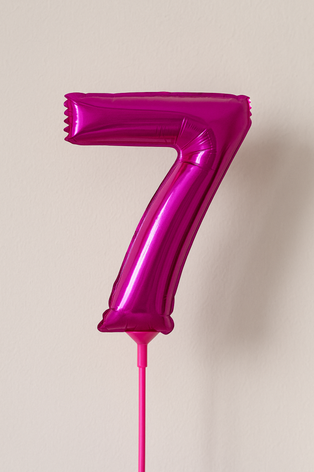 Парти балон, изработен от фолио във формата на цифрата 7 в цикламен цвят.