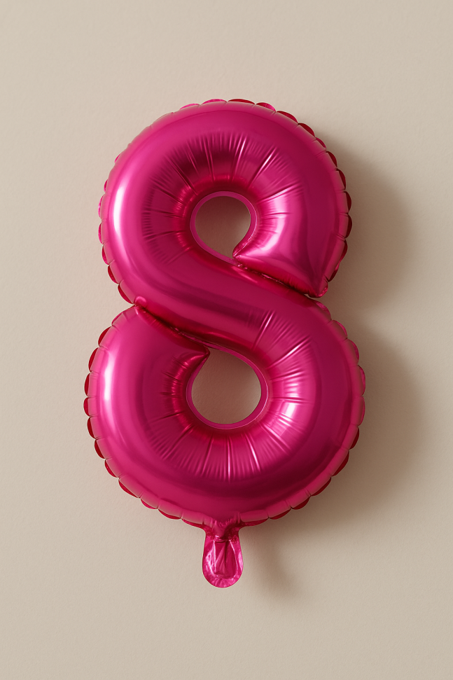 Парти балон, изработен от фолио във формата на цифрата 8 в цикламен цвят.