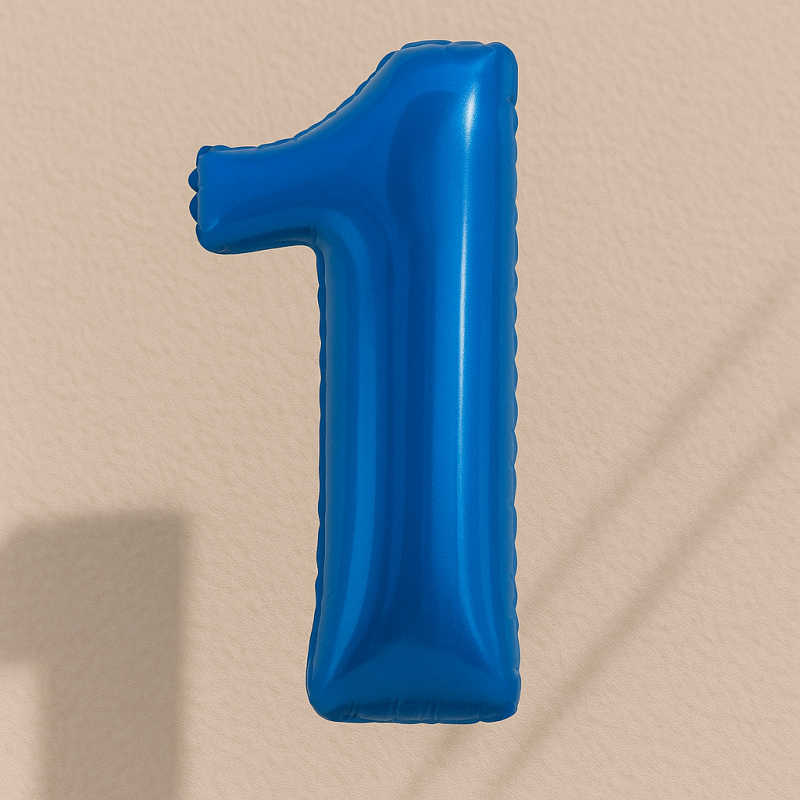Парти балон, изработен от фолио във формата на цифрата 1 в син цвят.