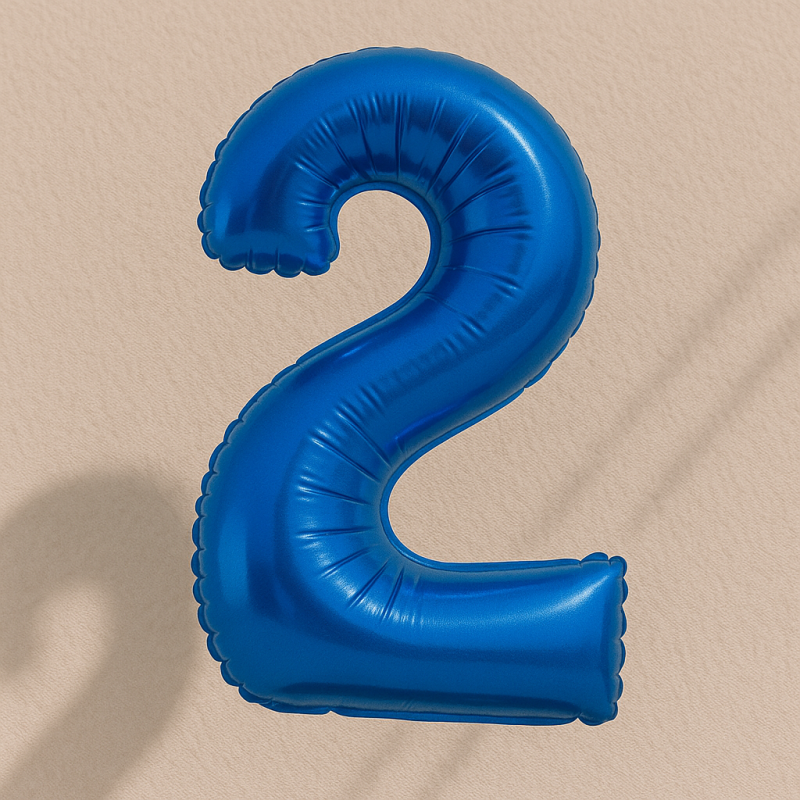 Парти балон, изработен от фолио във формата на цифрата 2 в син цвят.