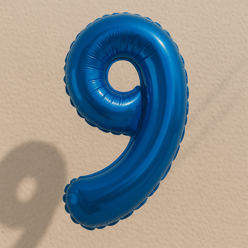 Парти балон, изработен от фолио във формата на цифрата 9 в син цвят.