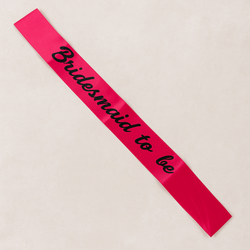 Парти лента за шаферка, изработена от сатен в цикламен цвят с черен надпис Bridemaid to be.