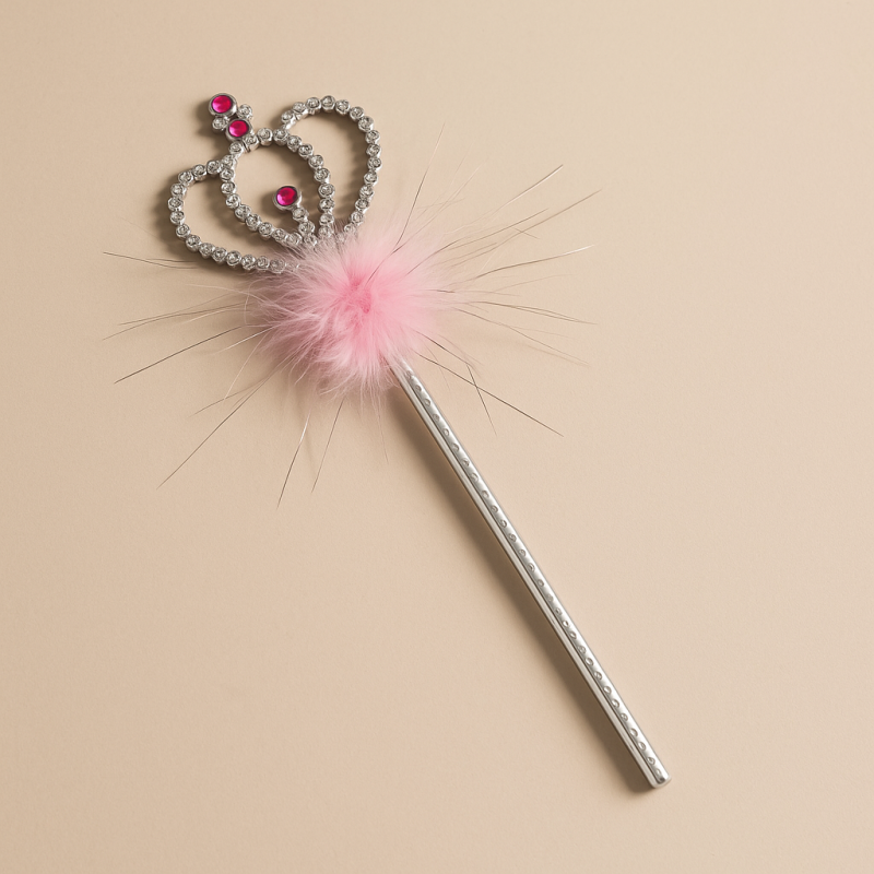 Карнавален аксесоар - жезъл в сребрист цвят с корона и розов пух.