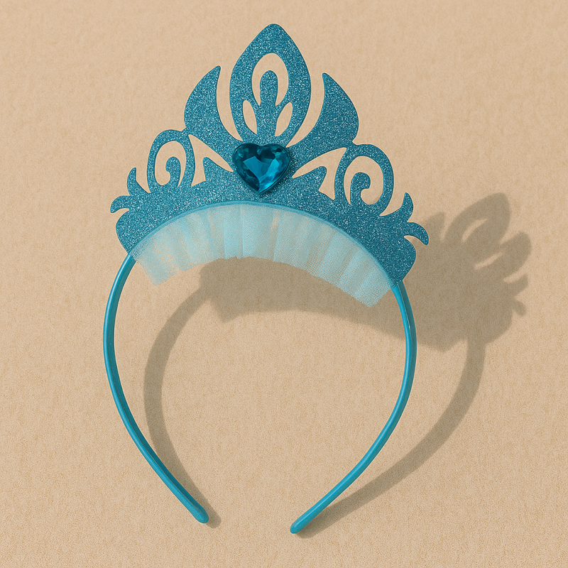 Карнавална диадема с декоративна корона на Снежната кралица в тюркоазено син цвят с тюл и блестящи брокатени частици.
