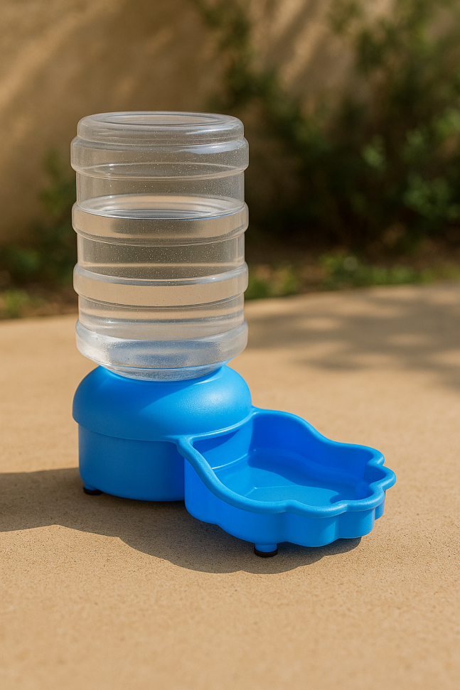 Настолна поилка за кучета, изработена от пластмаса.