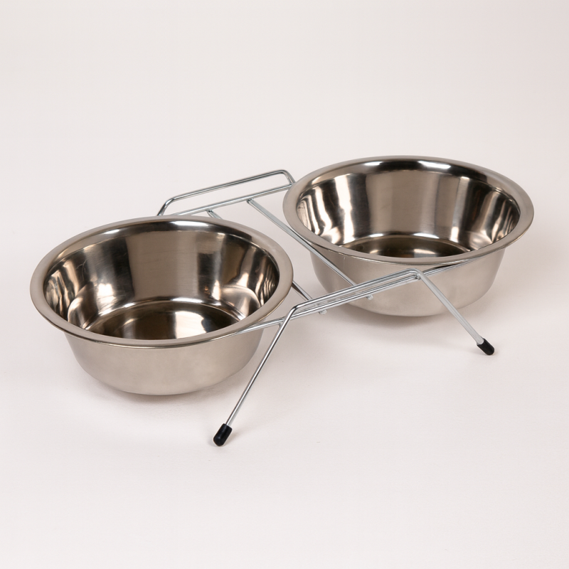 Комплект от две купички за хранене за кучета, изработени от неръждаема стомана + поставка.