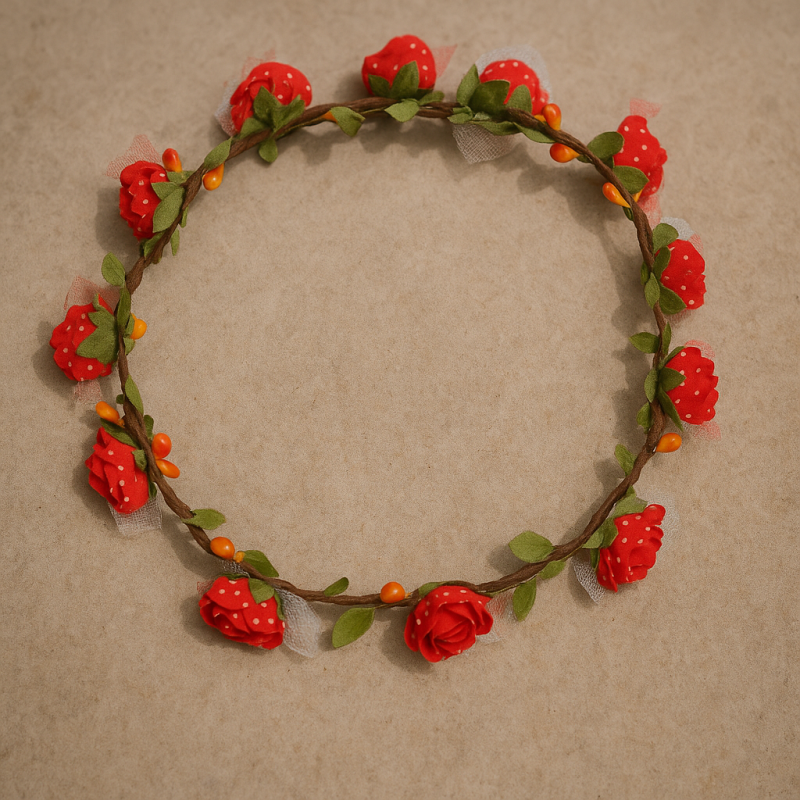 Карнавално венче с декоративни изкуствени рози в червен цвят.