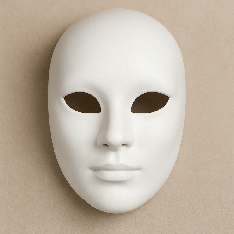Карнавална маска за цялото лице в бял цвят с ластик.