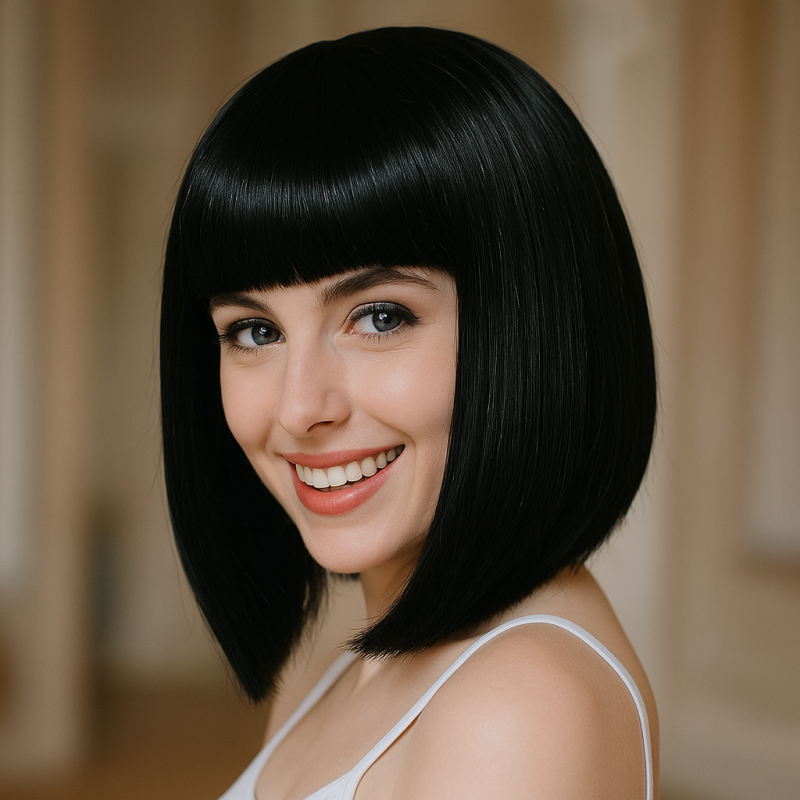 Дамска карнавална перука тип Френско каре в черен цвят.