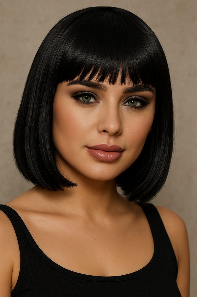Къса дамска карнавална перука тип Френско каре в черен цвят.