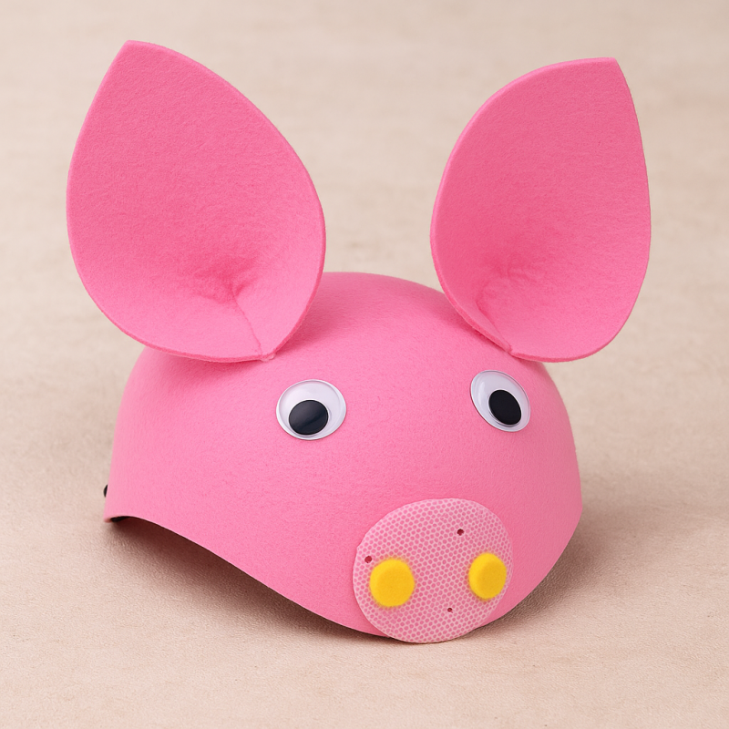 Детска карнавална шапка във формата на симпатично розово прасенце.