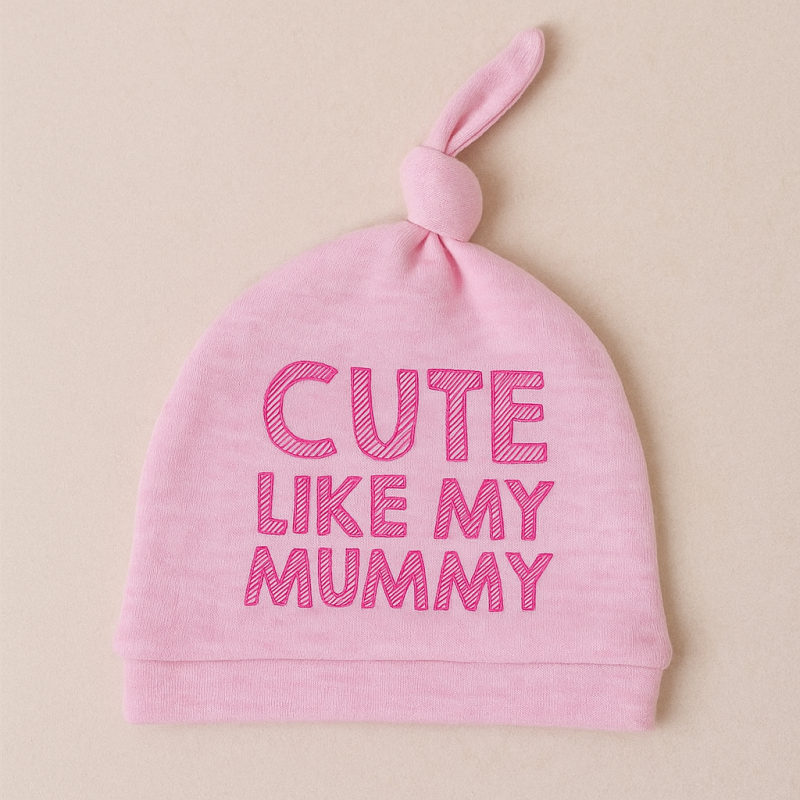Комплект от 2 броя бeбeшĸи шапки, изработена от мека памучна материя в розово и екрю с надпис.