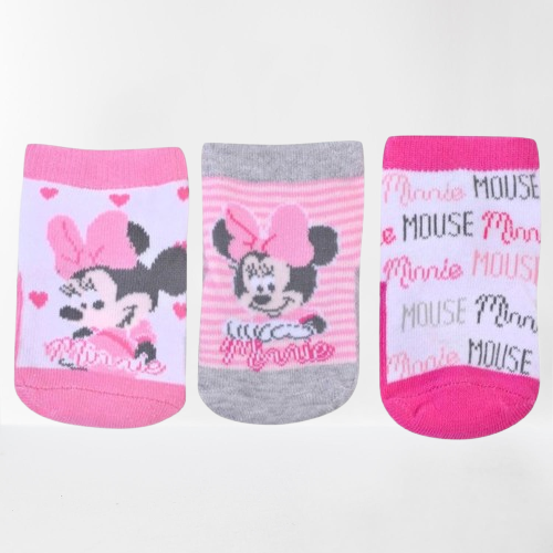 Комплект от 3 чифта бебешки чорапи за момичета, изработени от мека и приятна материя в розови нюанси с бродерия на Мини Маус.