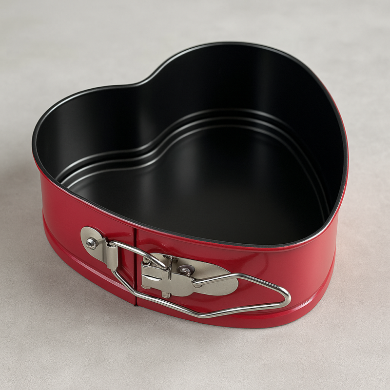 Металната форма за печене във формата на сърце с подвижна основа.
