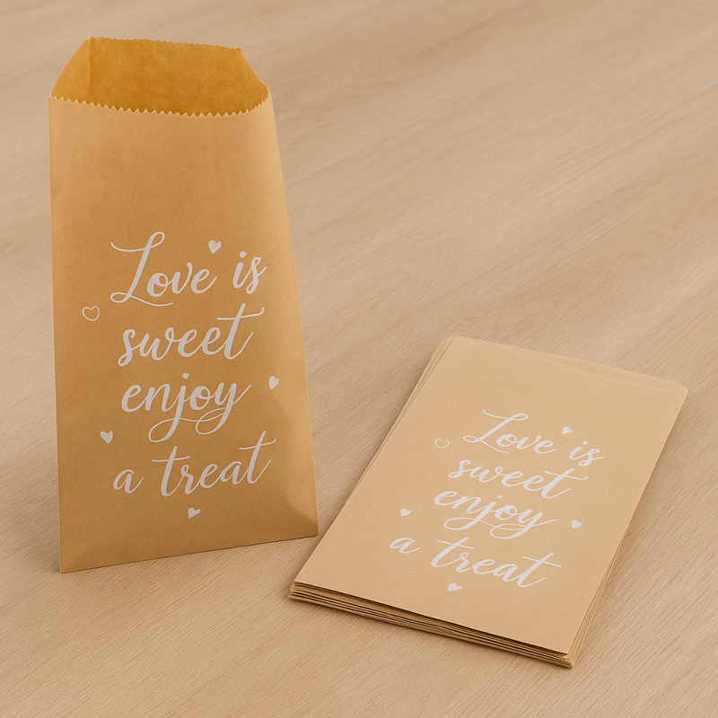 - Крафт хартия с бял печат любовта е сладка