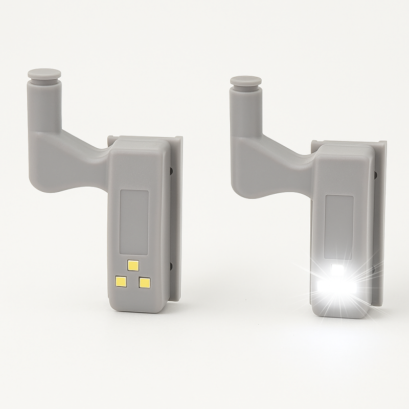 Тялото на LED светлините е стандартно и може да се пригоди за повечето панти на чекмеджета, шкафове и гардероби, който се предлагат на пазара, като уникалното при тях е, че освен, че са здрави и устойчиви на ежедневна експлоатация е, че имат вградени LED светлини, който могат да помогнат значително за осветяването на труднодостъпни места в дома Ви, което неминуемо си е голямо улеснение. Светлините работят с по една батерия всяка, като за удобство на потребителите първоначалните батерии са включени в комплекта.