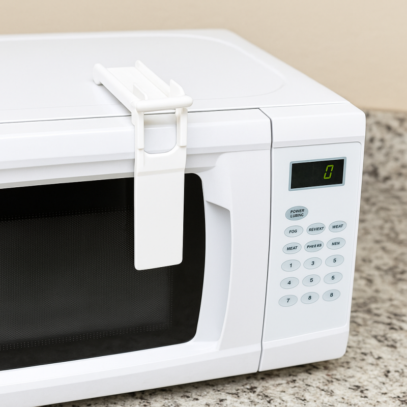 Предпазитела за микровълнова фурна е едно функционално решение което ефективно ще ограничи достъпа на децата до тези опасни за тях вмомента устройства, като здраво държи вратата затворена. Закрепването на предпазителя става посредством двойнозалепваща се лента, която е включена в комплекта за по - голямо удопство на потребителите.