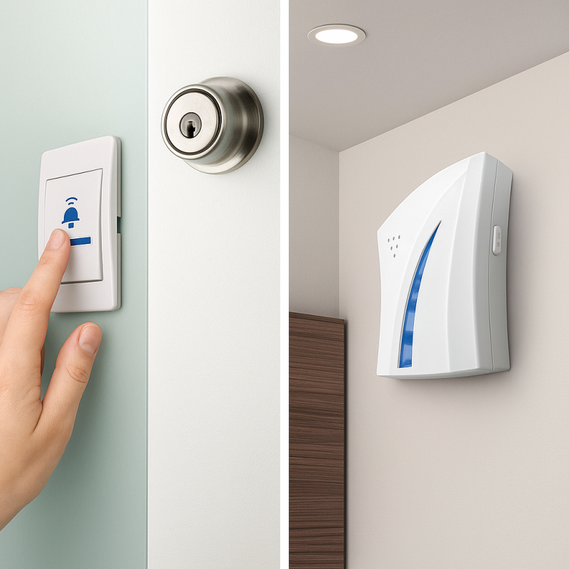Безжичния звънец за дома с предавател и приемник е изключително подходящо решение за всички домове, където няма окабеляване за кабелна камбана или има повреда във стария апарат или окабеляването. Звънеца може да работи и като SOS бутон за възрастни хора или болни или малки деца, където има нужда от някакъв вид аларма