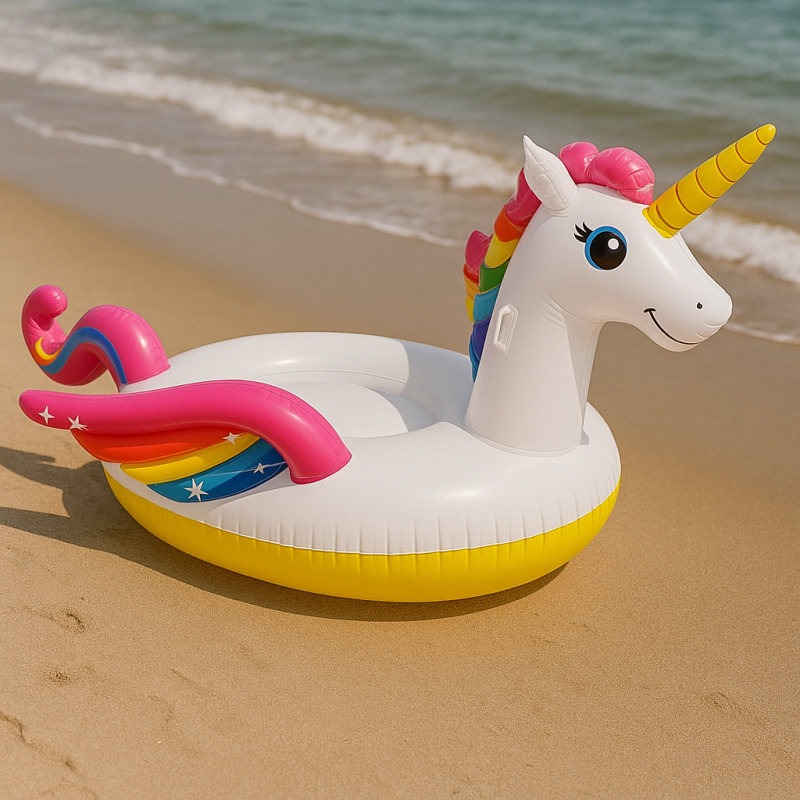 Надуваемия еднорог е изключително здрав и устойчив на температурни влияния, като предразполага множество забавни моменти вкъщи на басейна, на вилата или на плажа.