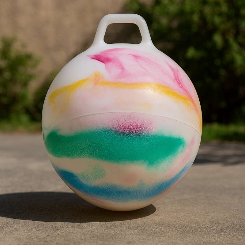 Подскачащата топка с мраморен ефект ще помогне на децата Ви да тренират забавлявайки се.