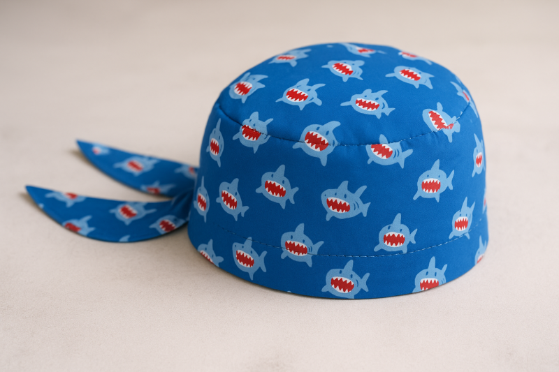 Детската шапка тип бандана е с леко закачлив характер и придава стил дори на плажа и предпазва от слънцето.