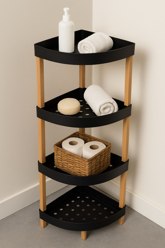 Ъгловия рафт - етажерка на 3 нива е едно много практично и удобно приспособление, което със сигурност ще внесе ред и ще ви спести пространство в помещението.