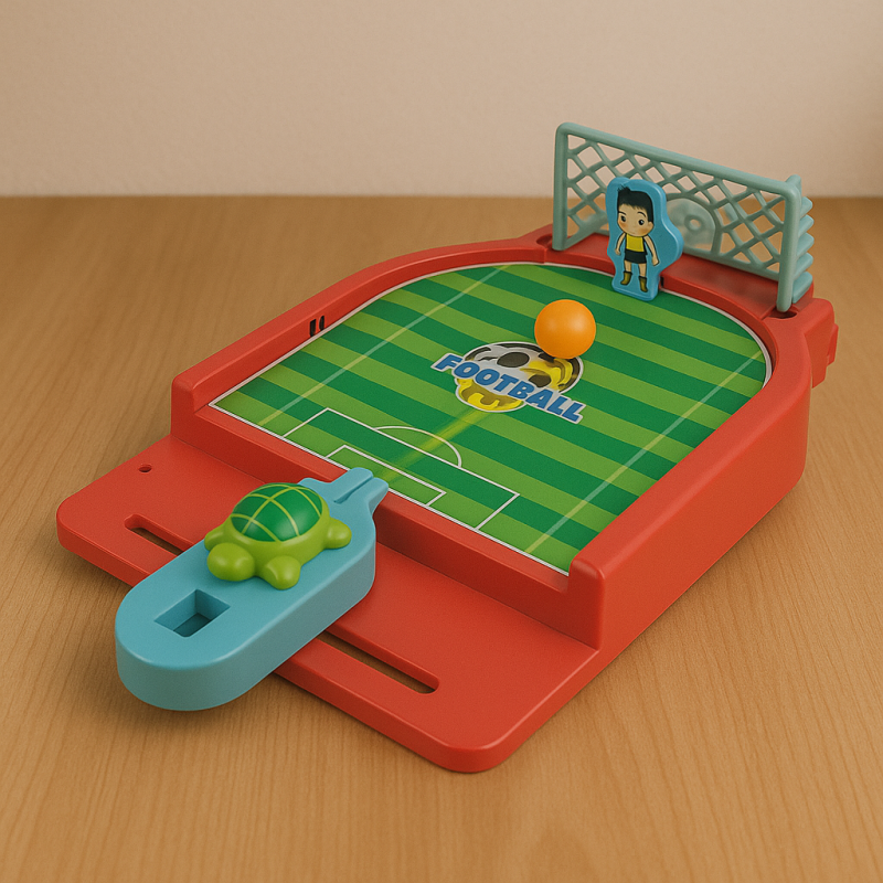 Настолната игра на футбол е с приблизителни размери 24 x 15 см., като в комплекта са включени лаунчер, 2 топки. Стартовият панел има възможност да се намества според желаната позиция за изстрелване, за да изпрати топчето до желаната цел и съответно вратарят може да се мести, за да спаси вратата си от отбелязване на гол. Играта е изработена от здрава и устойчива на експлоатация пластмаса, като гарантира множество приятни моменти с малки и големи. Играта се препоръчва за деца над четири годишна възраст и няма специални противопоказания.