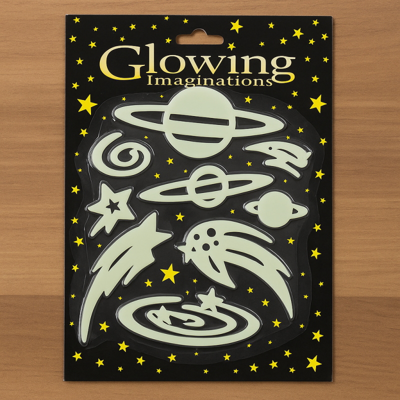 Комплекта съдържа различни форми на планети и комети, които светят в тъмното. Това означава, че когато изключите светлината, тези стикери ще светят в тъмното и ще създадат забавна и романтична атмосфера в стаята. Стикерите са лесни за поставяне и сваляне, без да оставят следи или повреди на стената. Те могат да се поставят на всяка гладка повърхност, като стени, врати или дори на мебели. Този продукт е направен от висококачествени материали и е дълготраен, осигурявайки ви години на забавление и декорация в детската стая. Също така, той е идеален за подарък за дете или за някой, който обича космоса и звездите.