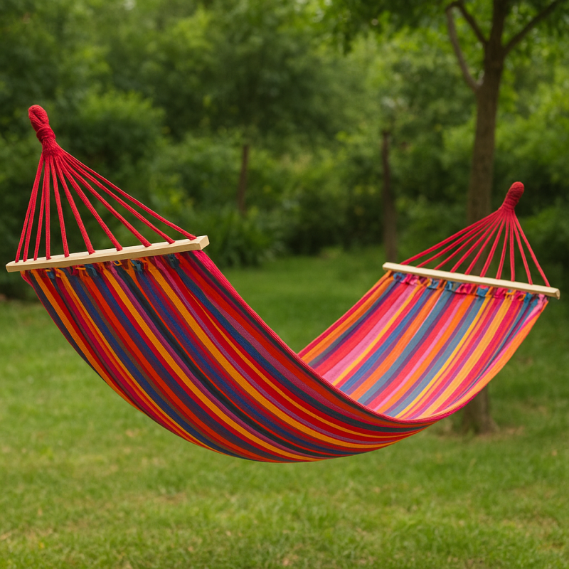 Изработен от висококачествени материали, нашият двойно-разтеглив хамак предлага мекота, комфорт и издръжливост. Неговата устойчива и здрава конструкция позволява на двама души да се наслаждават на меките платки и да се отпуснат напълно.