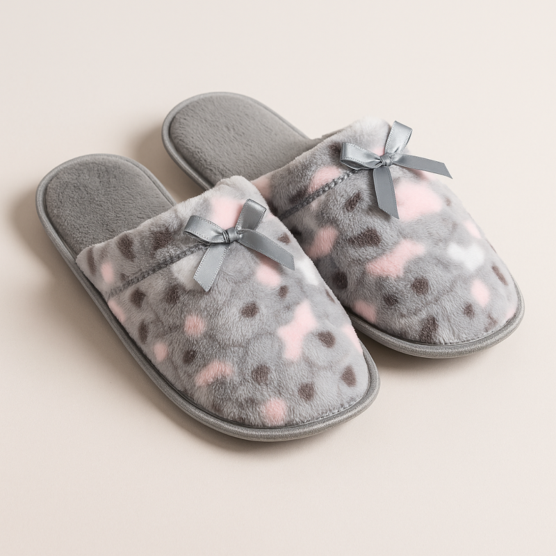 Зимата може да бъде стилна и уютна, а нашите дамски зимни чехли в сив цвят с изящни цветни декорации и панделка са идеалния начин да се справите с студа, без да правите компромиси с вашия стил.