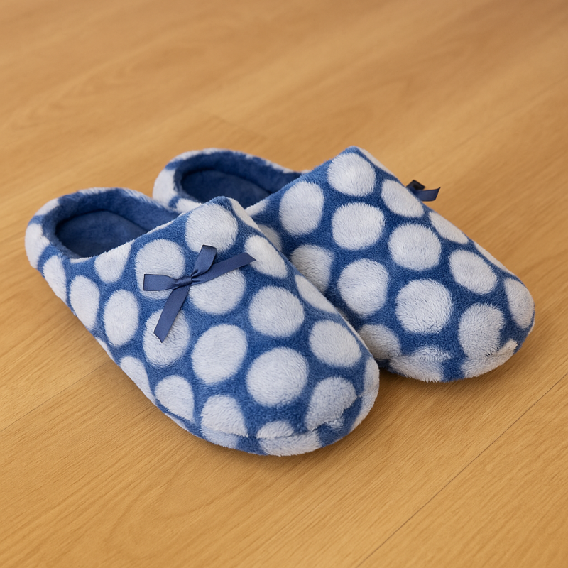 Представяме ви нашите дамски зимни чехли в стилни сини цветове с бели сърца - перфектният избор, за да се справите със студа и същевременно да бъдете в тенденция.