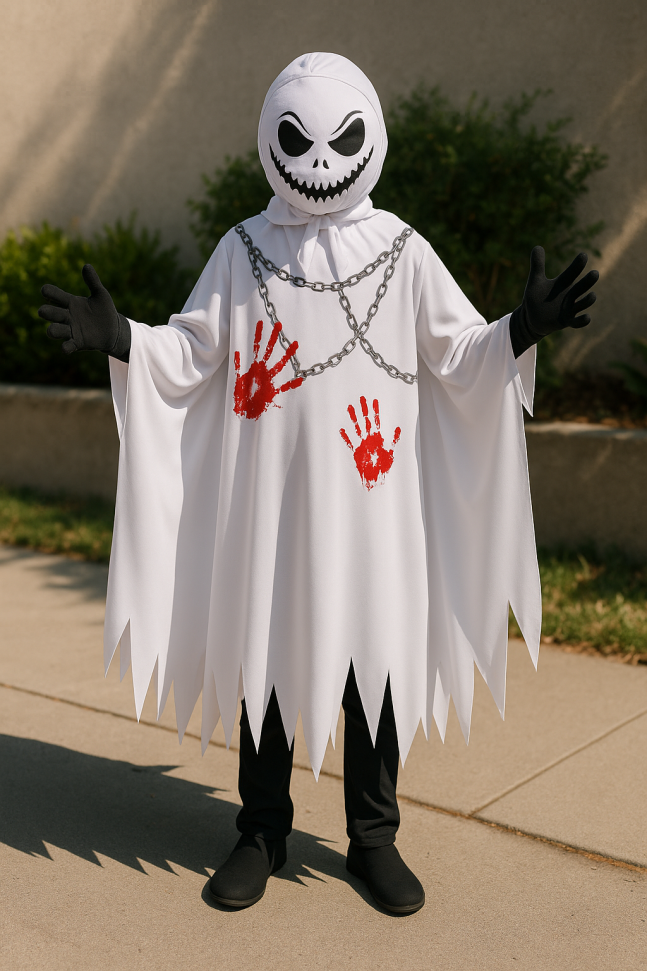 Реалистичност и детайли: Костюмът се отличава с реалистични детайли и качествени материали, които придават на призрака изглед, предизвикващ тръпка.