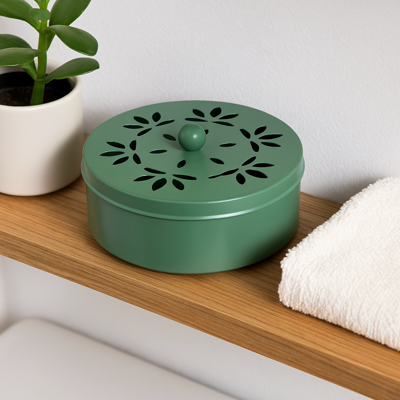 Поставка за спирали против комари е част от ежедневните аксесоари за борба с насекомите. Изработена е от метал и се предлага в маслинено зелен цвят, което осигурява както функционалност, така и естетическа привлекателност.