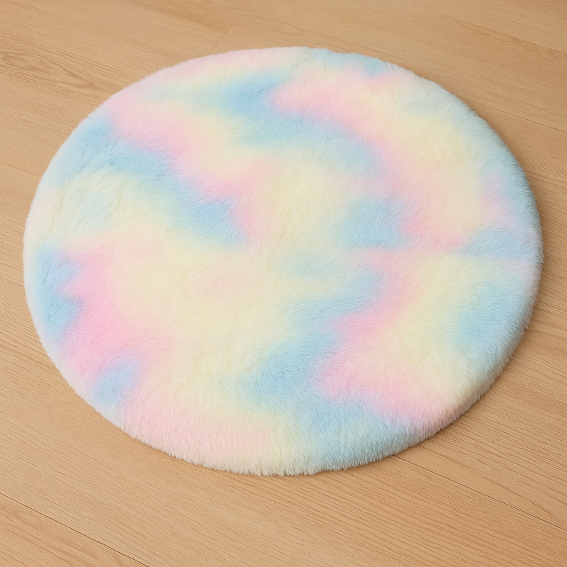 Пухкав килим - Многоцветен - Кръгъл - 80 см е декоративен килим с меко усещане и противоплъзгаща основа, идеален за детски стаи. Добавя уют и забавление с ярките си цветове.