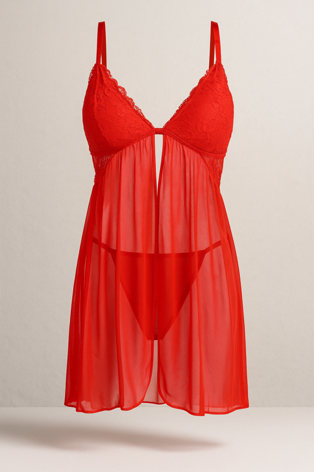 Това дамско бельо е създадено да подчертае вашата увереност и женственост. Полупрозрачният материал и червеният цвят създават усещане за изисканост и съблазън, което го прави идеален за Свети Валентин или други романтични събития.