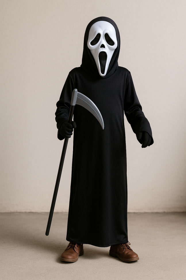 Превърнете празника в незабравимо изживяване с карнавален костюм със страшна маска. Този впечатляващ модел е идеален за момчета, които обичат мистериозните и страховити образи. Със своето черно наметало и автентична маска, костюмът ще създаде истинска атмосфера на Хелоуин.