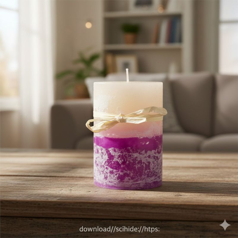Ароматна свещ в два цвята - слонова кост и лилав с аромат на лавандула.