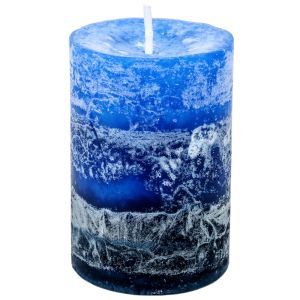 Декоративна ароматна свещ в син цвят с различни оттенъци.