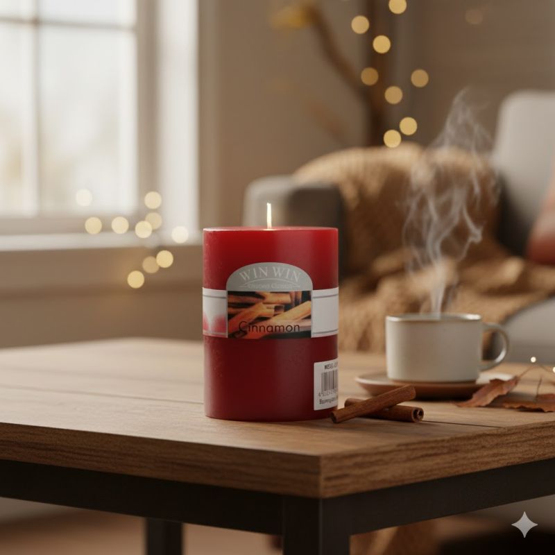 Декоративна ароматна свещ в цвят бордо с аромат на канела.