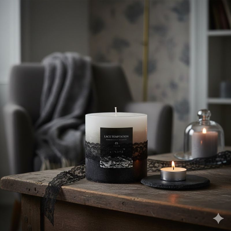 Ароматна свещ в три цвята - бял, сив и черен, изработена от висококачествен парафин с натурални растителни екстракти.