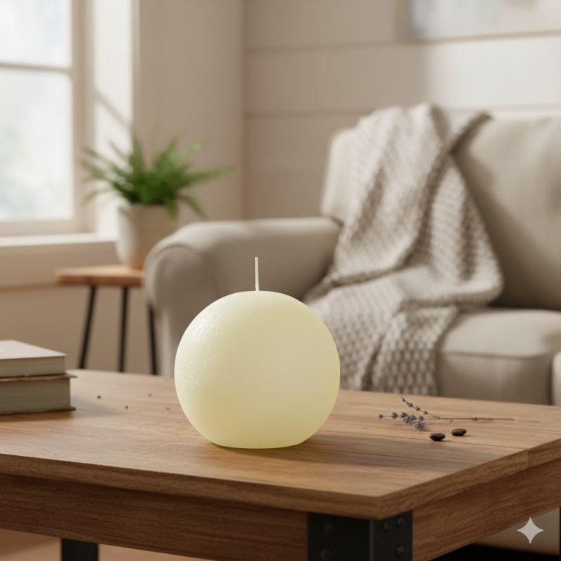 Ароматна свещ в бял цвят във формата на топка с аромат на жасмин.