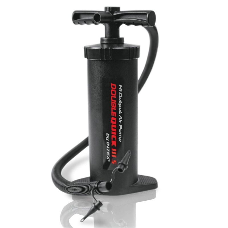 Въздушна помпа с двойно действие за напомпване и спадане на надуваеми изделия. Надува и изпуска въздуха нагоре и надолу чрез прикрепване на маркуча.