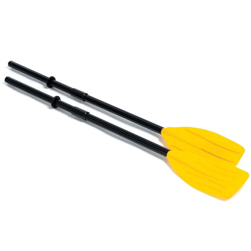 Комплект от 2 броя гребла в жълто и черно с вълнообразна повърхност, идеални за надуваема лодка.