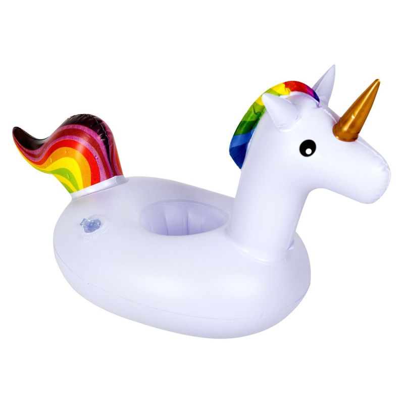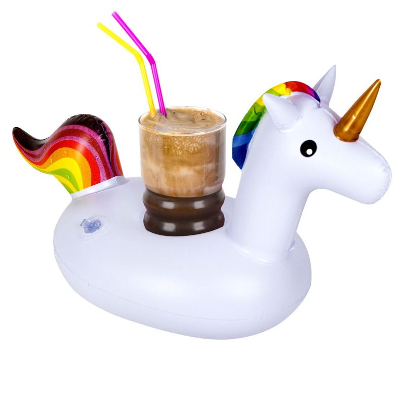 Надуваема поставка за чаша във формата на еднорог, изработена от издръжлива пластмаса.