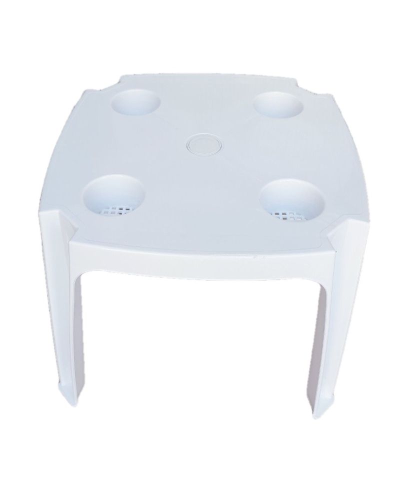 Пластмасова маса в бял цвят, устойчива на атмосферни условия.