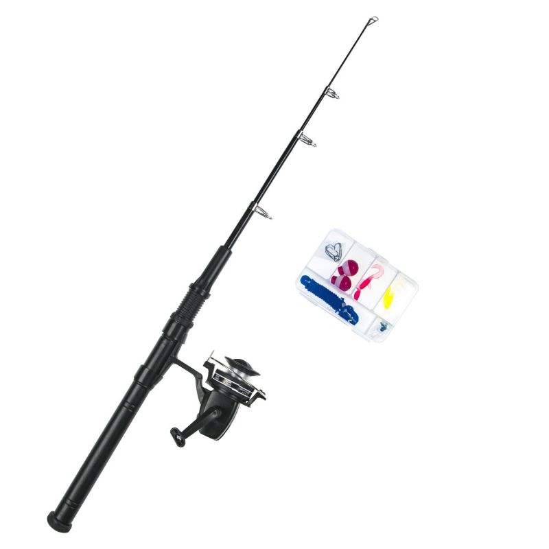 Комплектът включва детска въдица за риболов, която се сгъва на две за по-лесно носене и съхранение, риболовен механизъм, кукички и тежест.