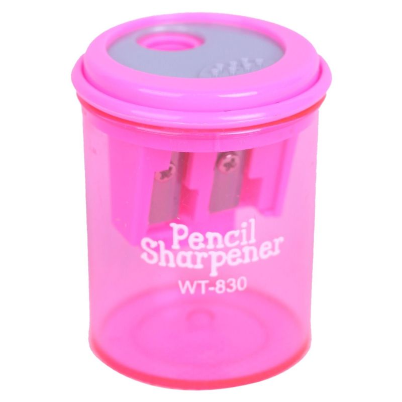 Двойна пластмасова острилка в розов цвят с контейнерче за събиране на стружките.