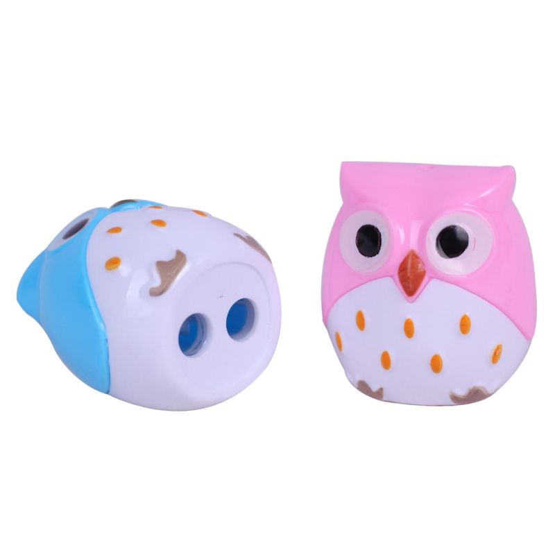 Комплект от 2 броя пластмасови двойни острилки във формата на симпатични сови в син и розов цвят.