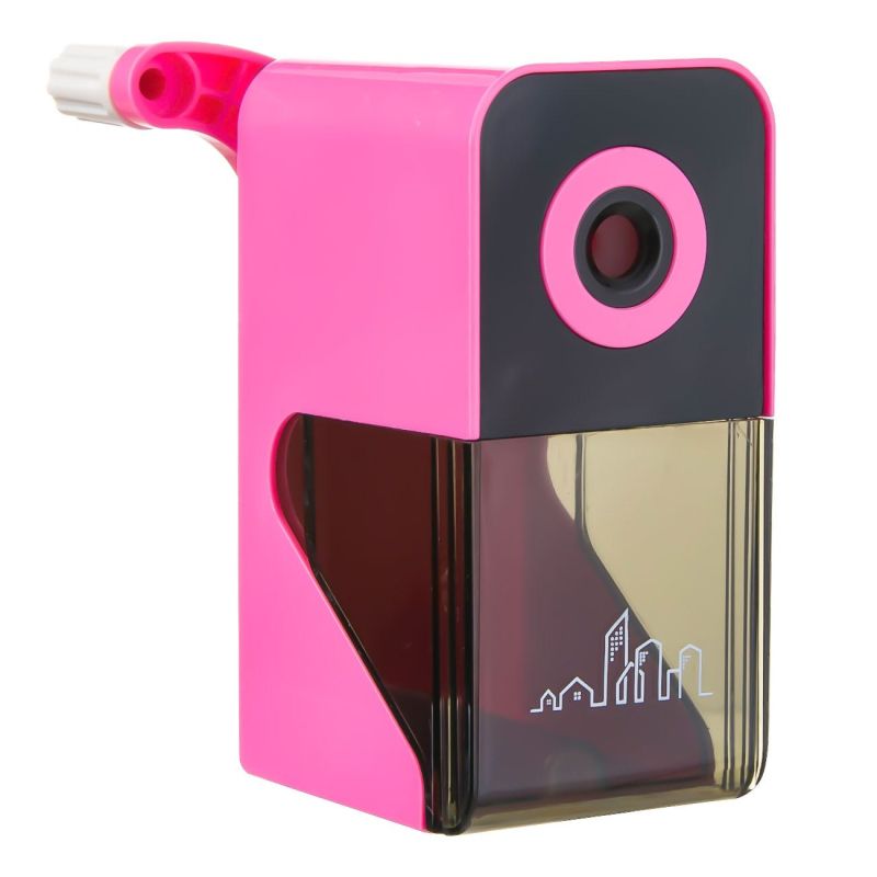 Механична пластмасова острилка с въртяща се ръчка и контейнерче за събиране на отпадъците.